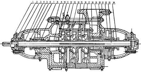 13中段、14導葉擋板、15導翼套、16拉緊螺栓、17出水段導翼、18平衡套;