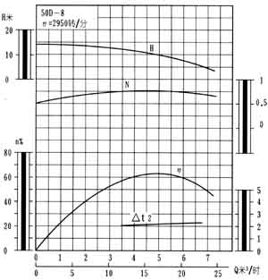 D型臥式多級離心泵為多級分段式,其吸入口位于進水段上,成水平方向,吐出口在水段上垂直向上,其揚程可根據使用需要而增減水泵級數。水泵裝配良好與否,對性能影響關系很大,尤其是各個葉輪的口出與導翼的進出中心,其中稍有偏差即將使水泵的流量減少,揚程降低效率差,故在檢修裝配時務必注意。