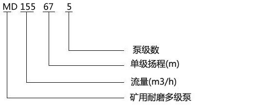 MD155-67X5型礦用耐磨多級(jí)離心泵型號(hào)意義: